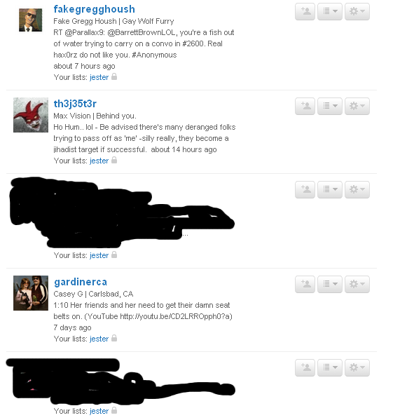 Dang, have to go look at these fuckers again as part of my daily routine. Put that Gardiner kid in with the other eight accounts in here, just to see if he hangs tough. Southern Poverty Law Center already has this for other reasons, now I ponder what role law enforcement and proper government oversight should have here.